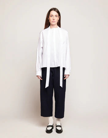 La camicia Antimonio di DOUUOD è un capo sofisticato che combina linee pulite e dettagli versatili. Realizzata in popeline stretch di cotone e nylon, garantisce un fit confortevole anche nelle vestibilità più aderenti, mantenendo al contempo un aspetto elegante e strutturato. Il dettaglio distintivo è il nastro al collo rimovibile, che permette di personalizzare lo stile rendendola adatta sia a look formali che a outfit più contemporanei.